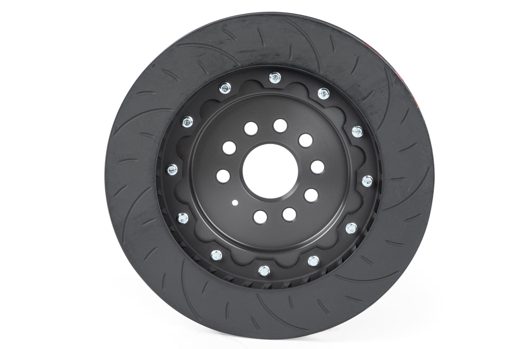 - Larger, wider 380x34mm floating 2-piece rotor assemblies with high-density directional cooling vanes and billet aluminum hats