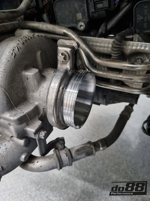 The kit comes with hoses in a textured black finish, CNC-machined adapters towards the turbos and top-quality, black hose clamps. The hoses are adapted to the OE air filter boxes, or the do88 air filter system with 66 mm connections.