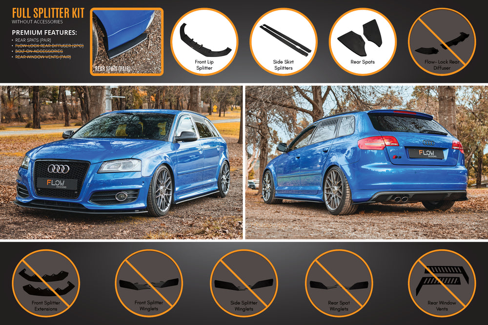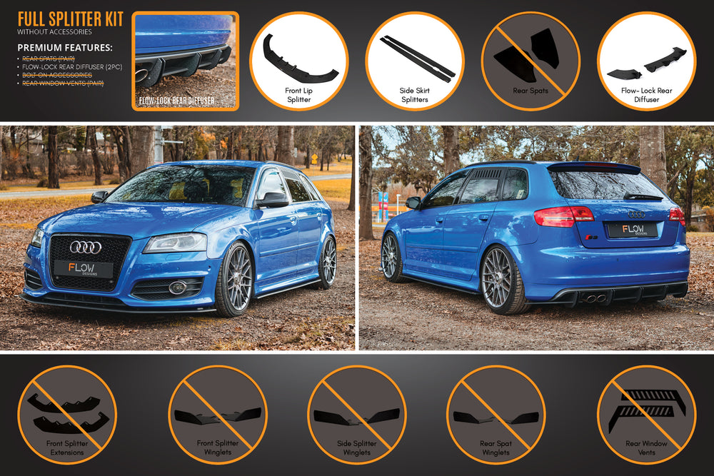 Flow Design Audi S3 8P 2 FL Full Splitter Set (With or without accessories)